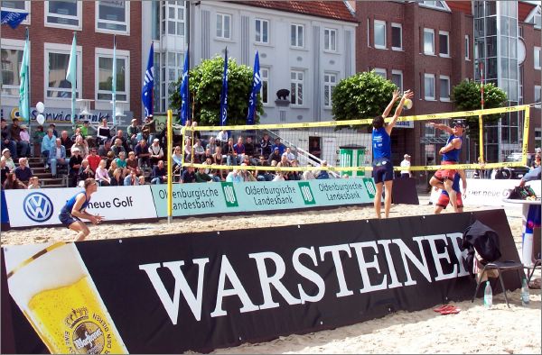 Gatzke/Schoen vs. Klein/Sonnenbichler. Hier blockt "Torte" Schoen Chri Sonnenbichler.